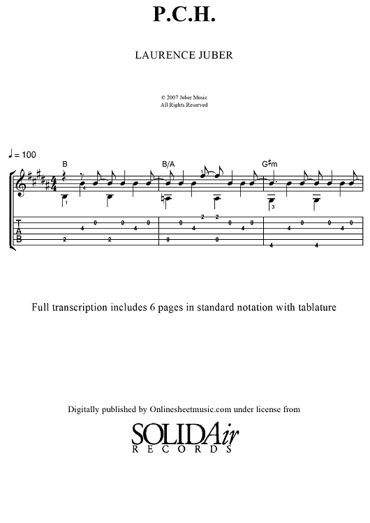 Digital Sheet Music for P.C.H. (With Embedded Audio) by Laurence Juber scored for Guitar Tab; id:453988