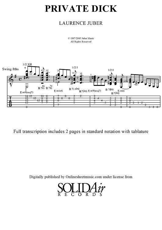 Digital Sheet Music for Private Dick by Laurence Juber scored for Guitar Tab; id:451896