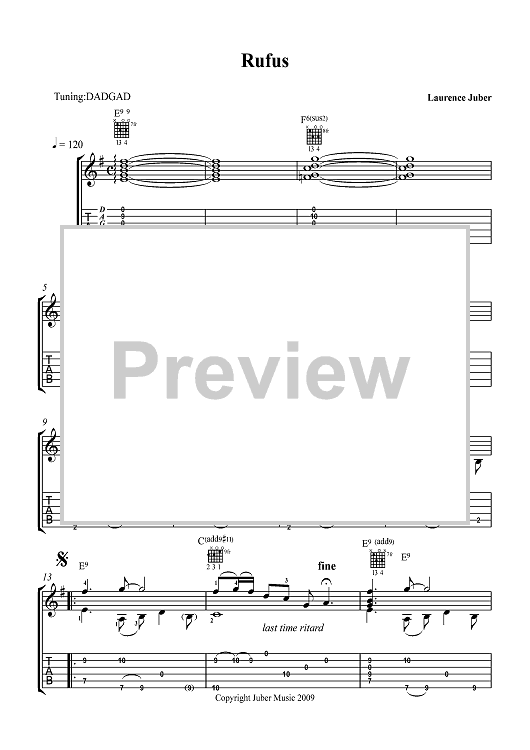 Digital Sheet Music for Rufus (No MP3) by Laurence Juber scored for Guitar Tab; id:451909