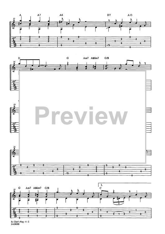 Digital Sheet Music for St. Clair's Rag (With Embedded Audio) by , Al Petteway scored for Guitar Tab; id:450587