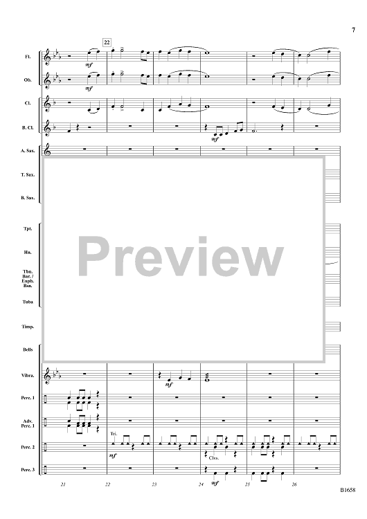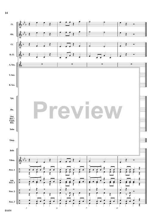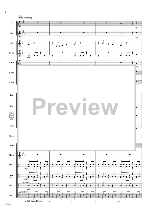 Across the Serengeti is a musical portrait of the grassy plains of Africa. Using only six notes, this piece establishes and sustains an infectious rhythm that students and audience will thoroughly enjoy. Percussionists have plenty to do and provide a vital component of the orchestration. (1:30)