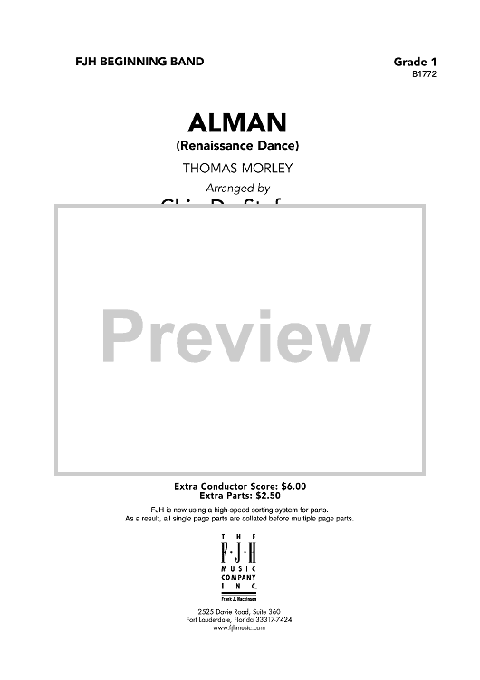 "Alman (Renaissance Dance) - Score" Sheet Music by Thomas Morley