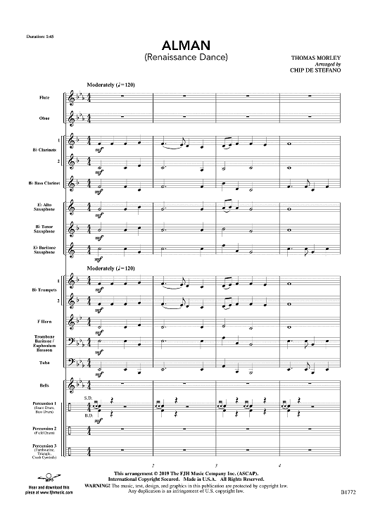 This fantastic arrangement is the perfect way to introduce Renaissance music to young musicians. An excellent choice for providing contrast within your concert program, this lively dance has wonderful technical, musical, and stylistic teaching opportunities throughout. (1:45)