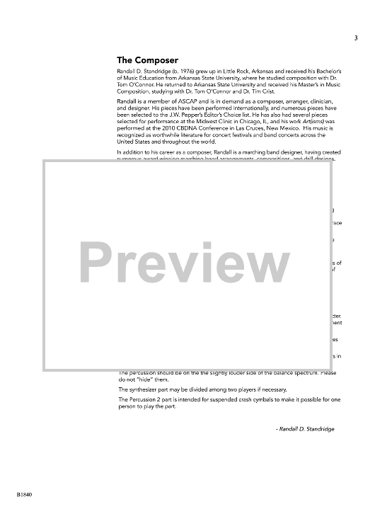 "Dark Ride - Score" Sheet Music by Randall D. Standridge