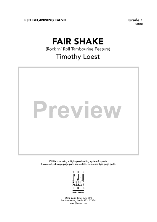 "Fair Shake (Rock ‘n’ Roll Tambourine Feature) - Score" Sheet Music by Timothy Loest