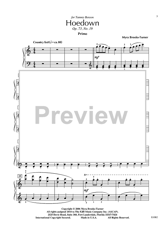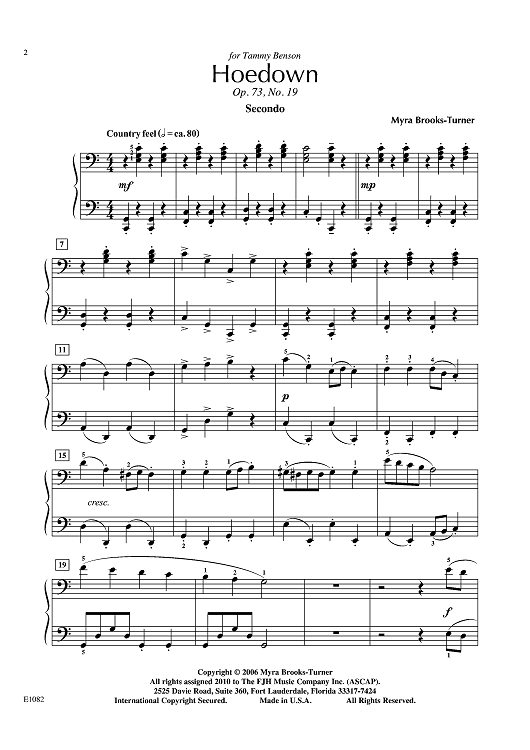 "Hoedown, Opus 73, No. 19" Sheet Music by Myra Brooks-Turner
