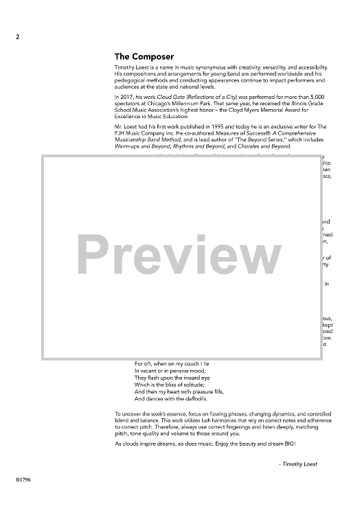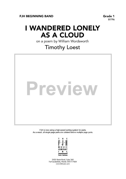 "I Wandered Lonely as a Cloud - on a poem by William Wordsworth - Score" Sheet Music by Timothy Loest