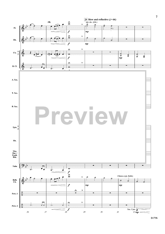 This incredibly expressive work uses lush harmonies, flowing phrases, and interlacing textures to depict the transcendent beauty and grandeur of clouds as they hover across the sky. Easily achievable by young bands, this work is equally suited for mature ensembles. A great study in musicianship that will have your audience looking up to the heavens. (2:15)