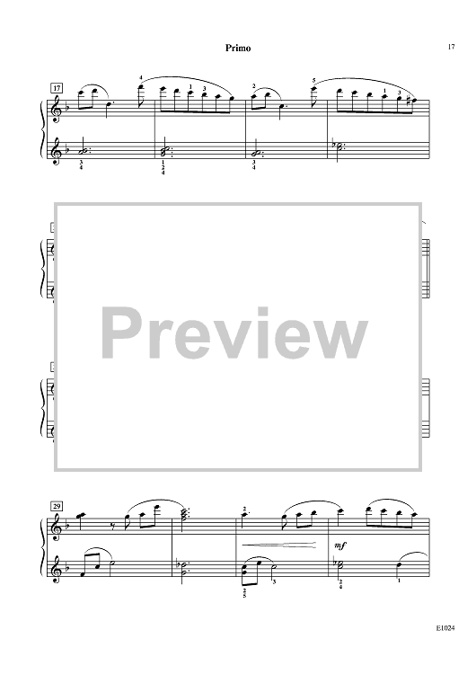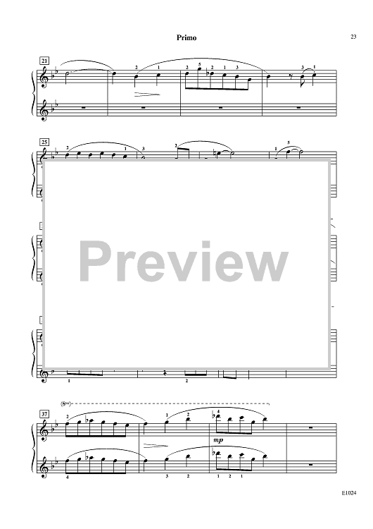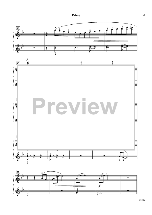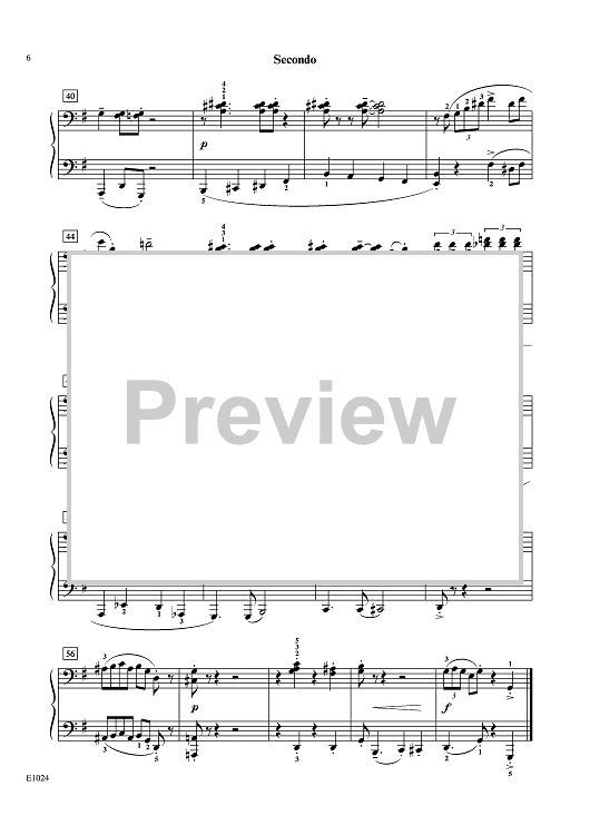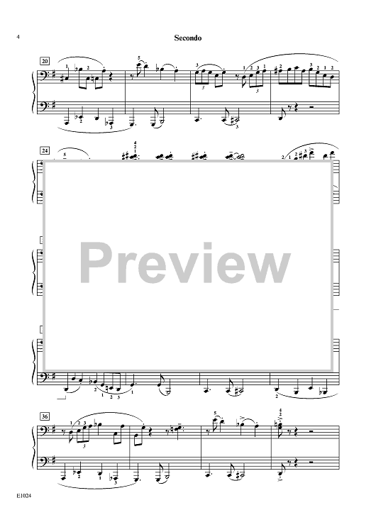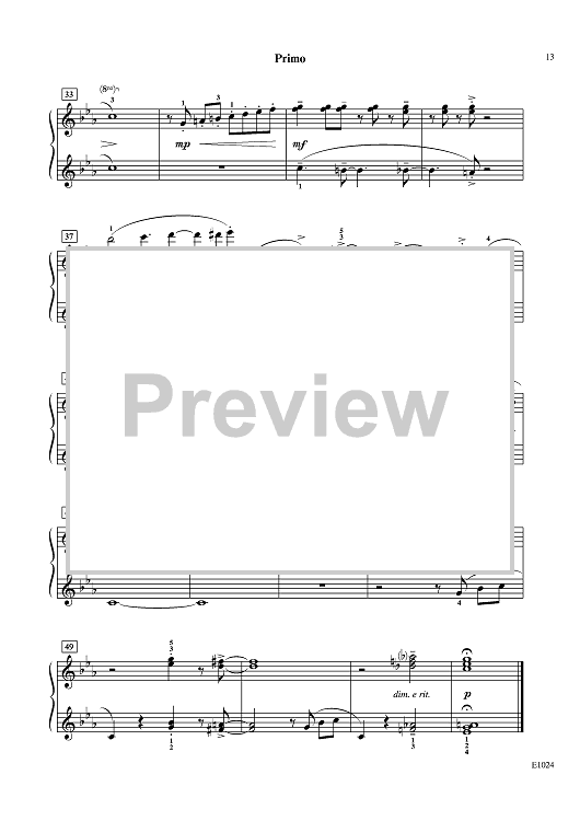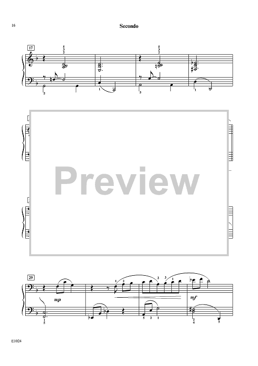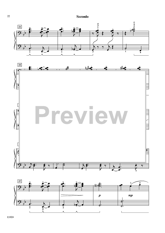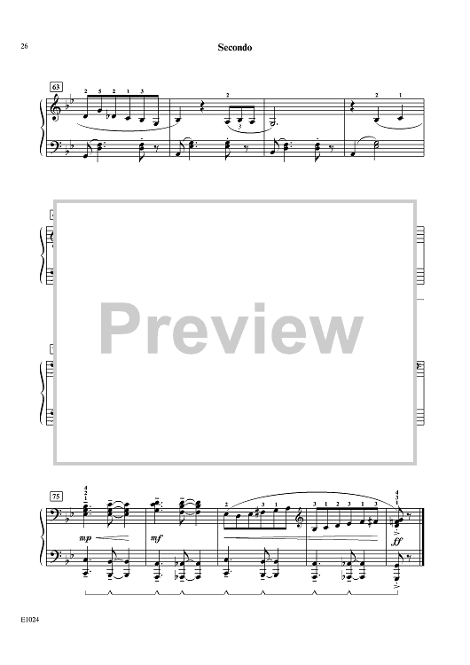 This one piano, four hand Jazz Suite is played out in four movements, exploring contrasting styles and keys, with fresh up-to-date sounds: A Swing Thing has an upbeat tempo, swing eights, walking bass, triplets and syncopation. A Little Latin is a more laid back style, with syncopation, accents, and somba rhythms. Ballad for Julia slows to a romantic mood, with 9th, 11th, and 13th chords used in the harmony. BlueWaltz rounds out the suite in a spunky, lively style, with syncopation and chromaticism.