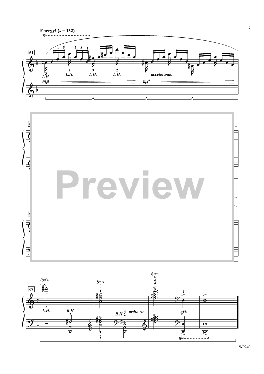 This late intermediate piece commissioned by the Hattiesburg Music Teachers League, in honor of their 2005 composer festival, is written in the Romantic style. This piece is full of expressive passages utilizing rubato playing. The introduction is bold and dramatic which leads into a lyrical section that later intertwines the lyrical and the dramatic. Contained in piece are eighth, triplet, sixteenth, and thirty-second note passages that will give the student the variety of rhythms in which to explore. There are also opportunities for the left hand to play the melody.