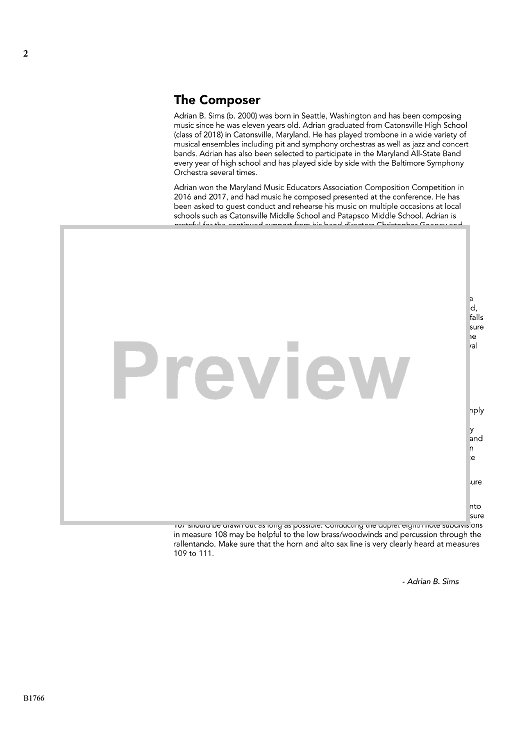 With flowing melodic lines and rich harmonic textures throughout, this work depicts a beautiful journey down the Niagara River. As the river gains strength, the music gradually builds in intensity until it gives way to the awe-inspiring view of Niagara Falls. Exceptional writing by a young composer, and a great way to expose your students to music by one of their peers. (4:30)