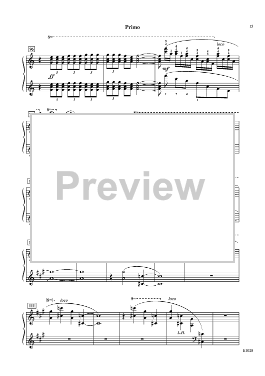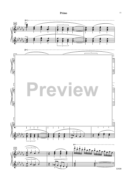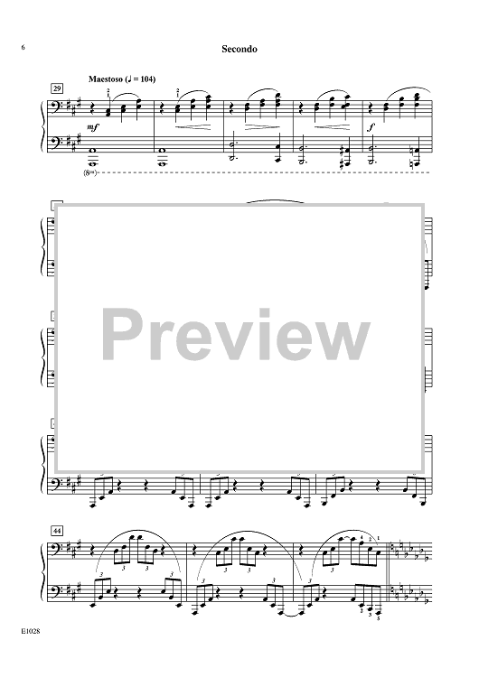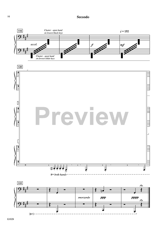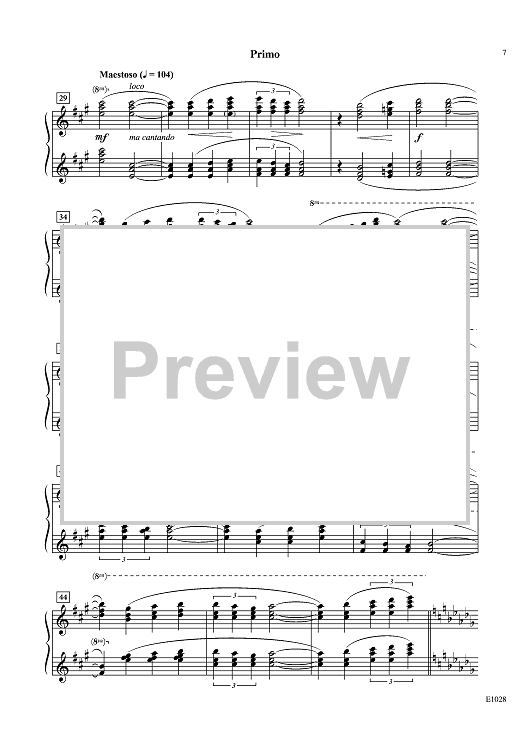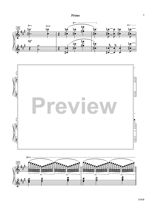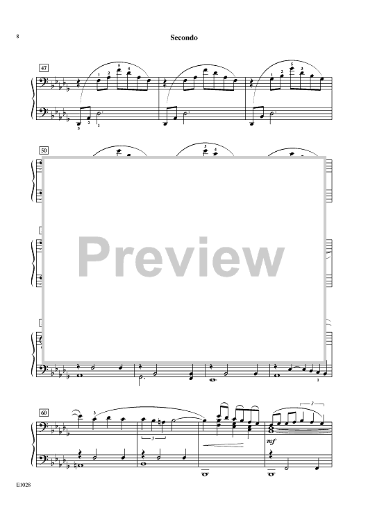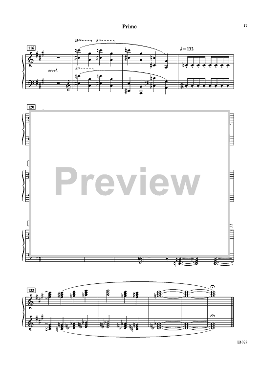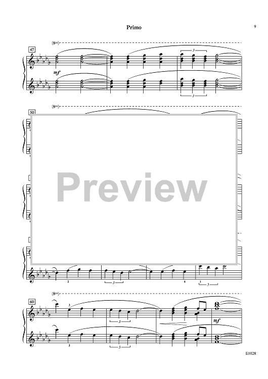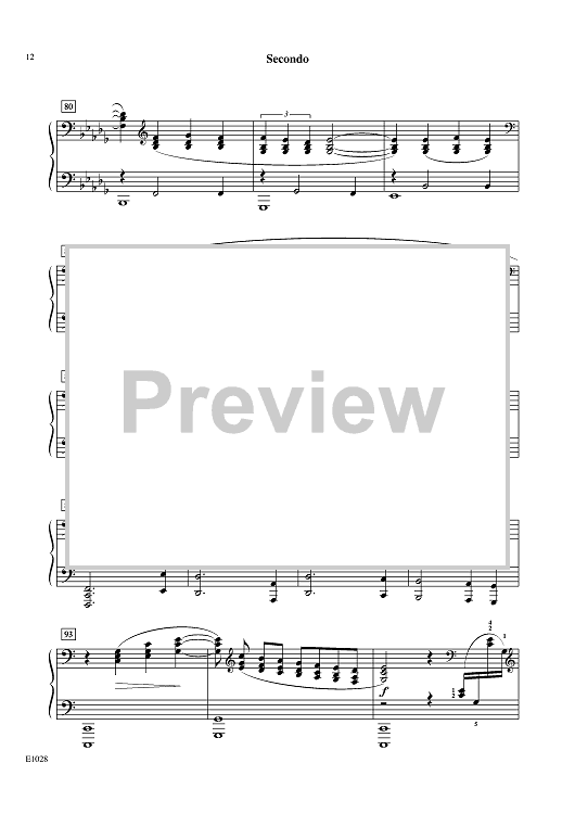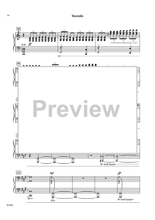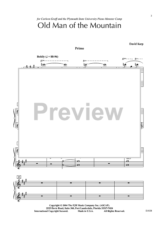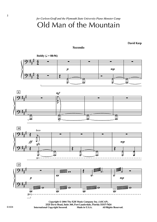 An exciting duet with just a taste of the atonal, Old Man of the Mountain spans keyboard peaks with repeating scales, arpeggios, parallel chords, octaves and tremelos. Trek through ever-changing rhythmic passages and clusters that echo and fade in the finale. A perfect festival piece!