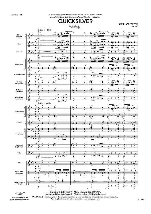 "Quicksilver (Galop) - Score" Sheet Music by William Owens