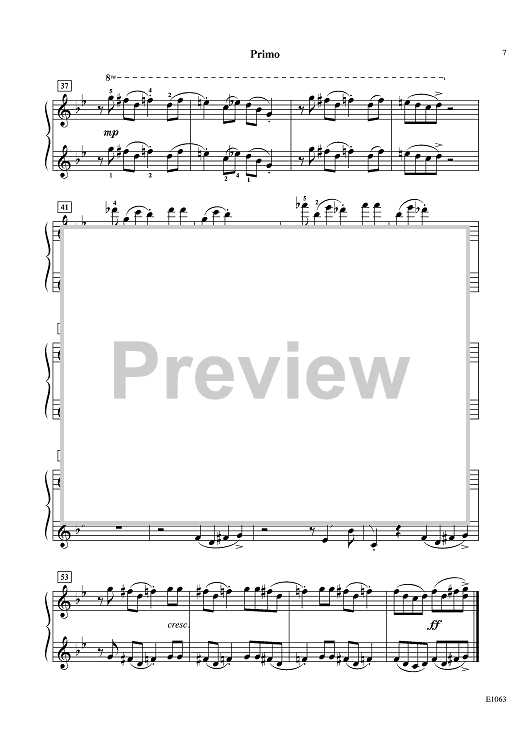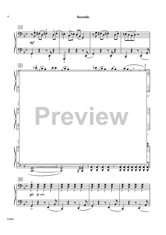 This late intermediate duet has a "rock solid" rhythmic drive with a "bluesy" feel, exciting dynamic changes, and a variety of articulations. The interplay between the primo and secondo parts makes this a super-fun piece for your next recital.