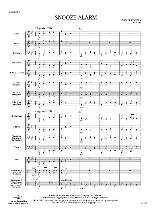 "Snooze Alarm - Score" Sheet Music by Mekel Rogers