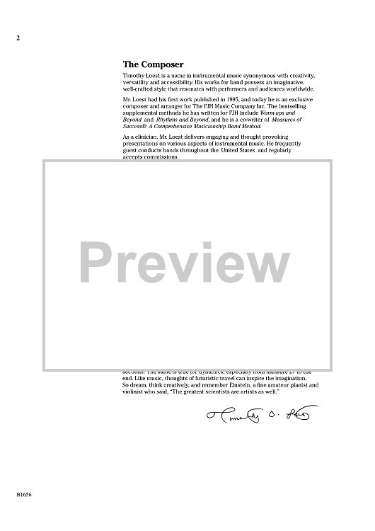 Take an imaginative departure from the typical band piece with this highly programmatic work. Depicting futuristic travel, the music takes the audience to a time when matter is broken down, beamed across space, and then reassembled elsewhere. Your students and audience will agree with Einstein, who said, "The greatest scientists are artists as well." (1:00)
