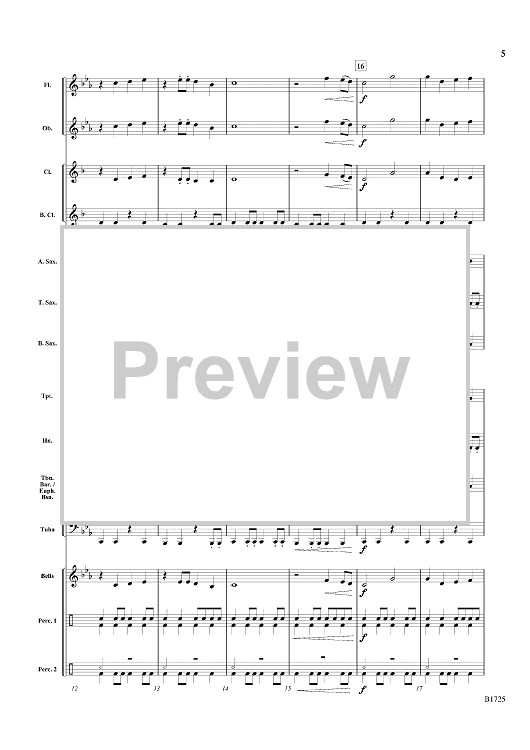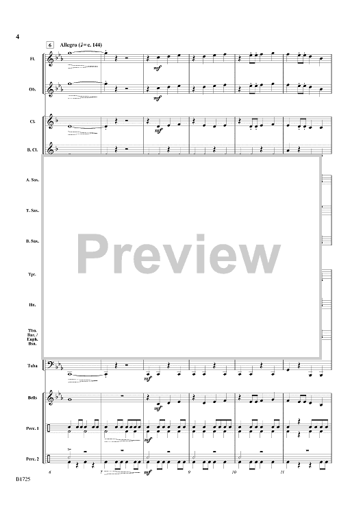 Take your students on a journey back through time to Roman Britannia. This programmatic work depicts the Celtic Queen’s revolt against the Roman occupation of Britain in the first century. Using only six notes and simple rhythms up to eighth notes, the music sounds mature with its solid scoring and active percussion. (1:15)