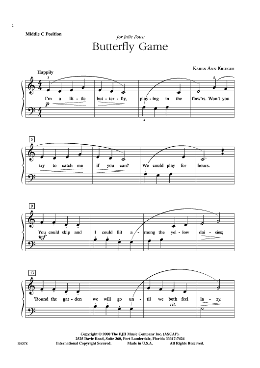 "Butterfly Game" Sheet Music by Karen Ann Krieger