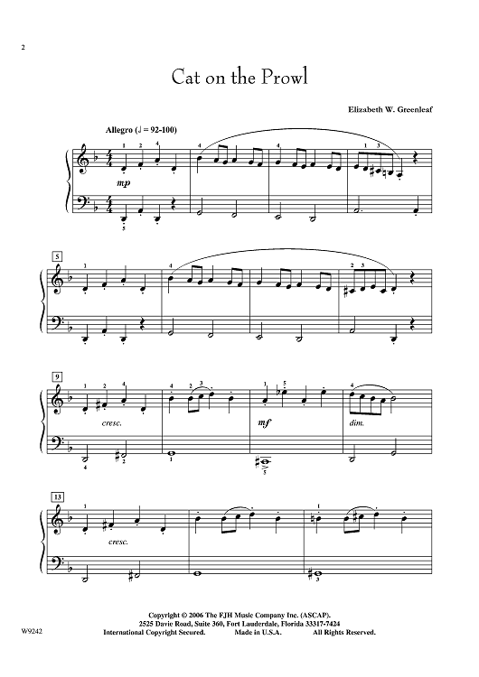 "Cat on the Prowl" Sheet Music by Elizabeth W. Greenleaf