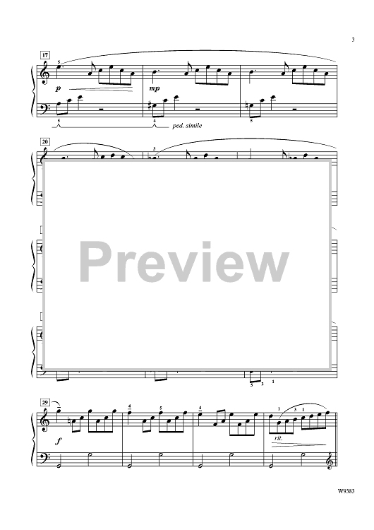 Voicing a melody over a broken triad and using the pedal throughout are two of the techniques needed to play this piece beautifully. In the key of C Major with the second theme in A minor, the LH uses intervals of 5ths-8ths while the RH plays mostly scales and arpeggios while creating a lyrical line.
