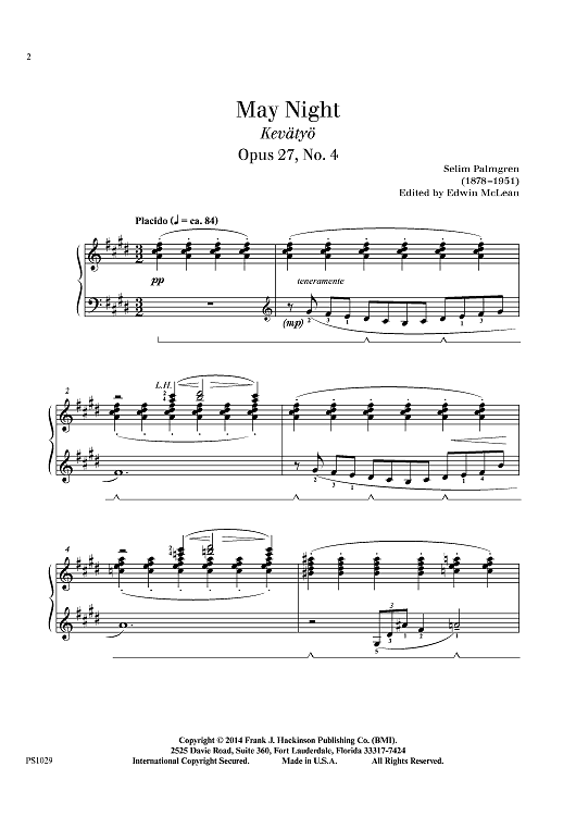 "May Night, Op. 27, No. 4" Sheet Music by Selim Palmgren