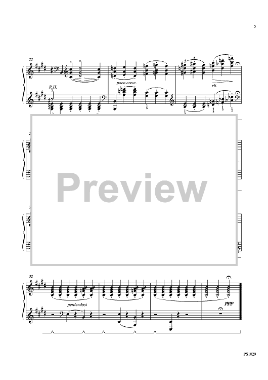 One of the best-known works by Palmgren, this Impressionistic piece requires the L.H. to project the melody even when it crosses over the R.H. The pedal is notated throughout, creating atmospheric effects. This short piece (36 measures) is a perfect introduction to Impressionism for the Intermediate/Late Intermediate student featuring thick sonorities, parallelism and rolled chords.