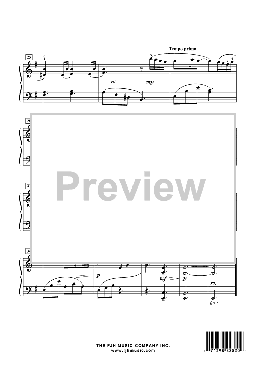 In the key of E minor and 6/8 meter, this piece is lyrical and expressive. It modulates to G Major in the B section, and then a peaceful close back in E minor. The use of rubato and the fact it doesn’t require a large hand makes it appealing to adults as well as teens.