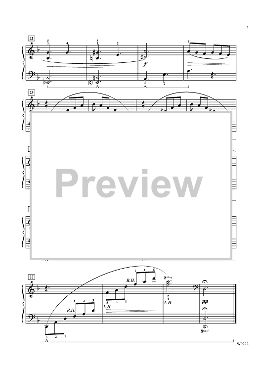 An impressive sounding intermediate piece in 6/8 time offers cross hand arpeggios, and an artistic use of crescendos and decrescendos within one phrase, which enables the emphasizing and practicing of the "shaping" of phrases. The combination of its pedagogical value along with the musical appeal of this piece will make it a favorite for the teacher and student alike.