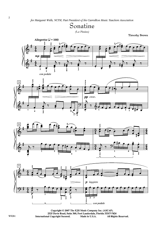 "Sonatine (Les Pivoines)" Sheet Music by Timothy Brown