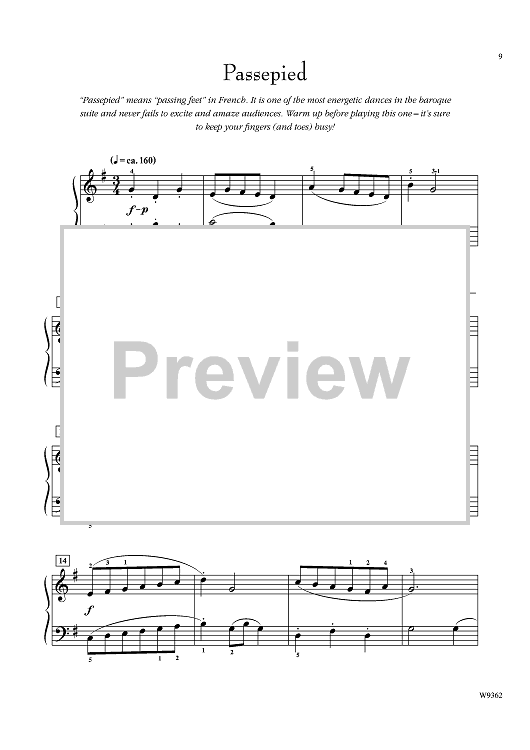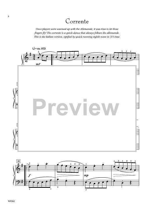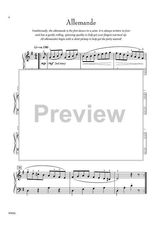 This suite is intended to provide pianists with an introduction to baroque style. Each piece is technically and musically sound and rewarding, providing pianists of all ages with an enjoyable set of stepping stones to the more advanced works of J.S. Bach, Handel and others.