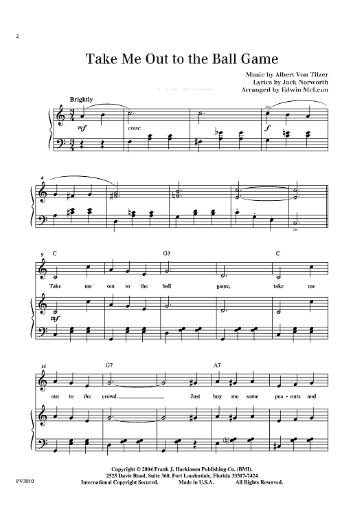 "Take Me Out to the Ball Game" Sheet Music by Albert von Tilzer