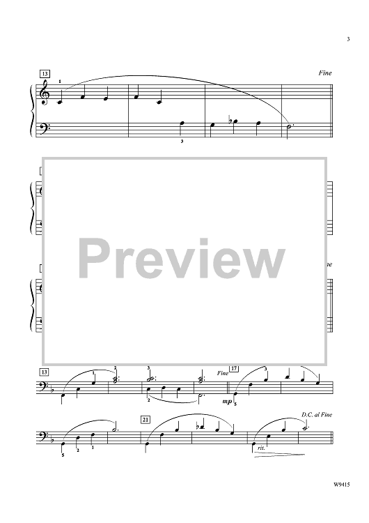 Hands are in Middle C Position in this beautiful, lyrical melody in the key of F. Reading accidentals and expressing a long legato phrase are the pedagogical goals. No hand shifts required. Optional teacher duet is charming.