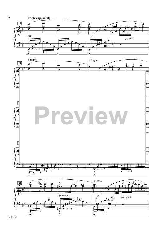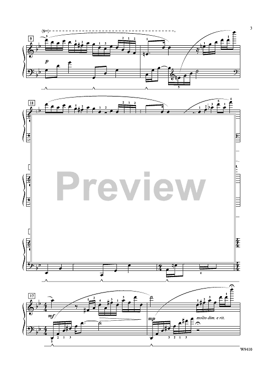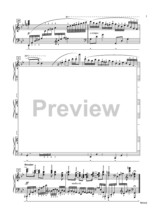 This piece has continuous running 16th note passages in the key of G minor. The tempo is "light and sparkling" with R.H. octaves in section B and a broad fortissimo finish with the final cadence in G Major.