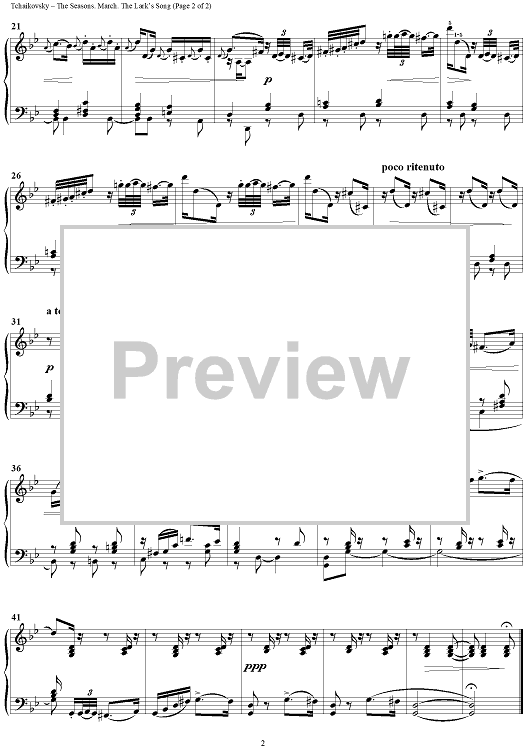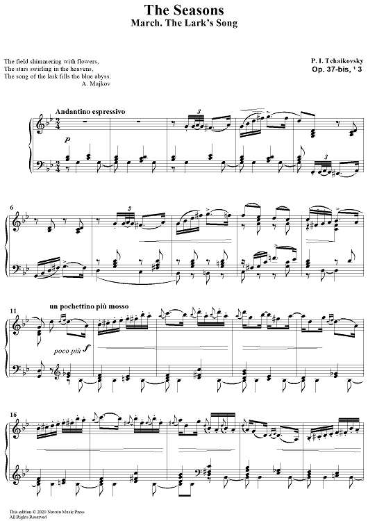 "The Seasons - March. The Lark's Song" Sheet Music by Peter Ilyich Tchaikovsky