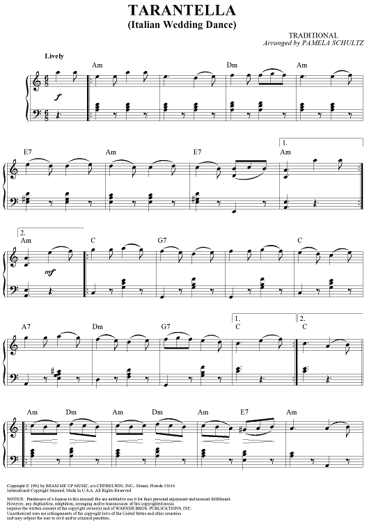 Digital Sheet Music for Tarantella (Italian Wedding Dance) by Pamela Schultz, Traditional scored for Piano Solo; id:262070