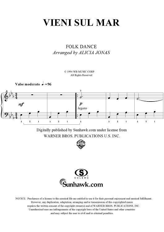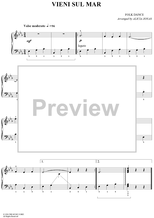 Digital Sheet Music for Vieni Sul Mar by Alicia Jonas, Traditional scored for Easy Piano; id:261962