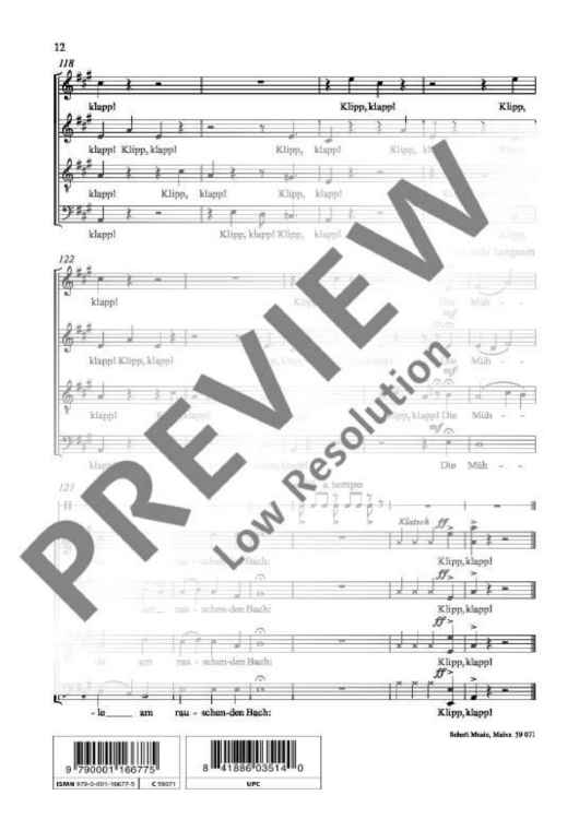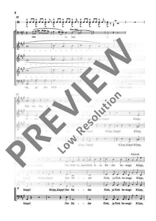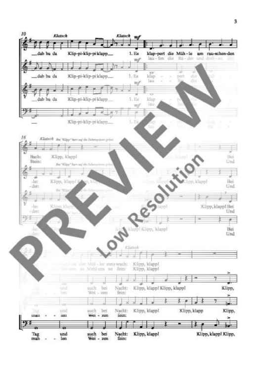 "Es klappert die Mühle - Choral Score" Sheet Music by Alwin Michael Schronen