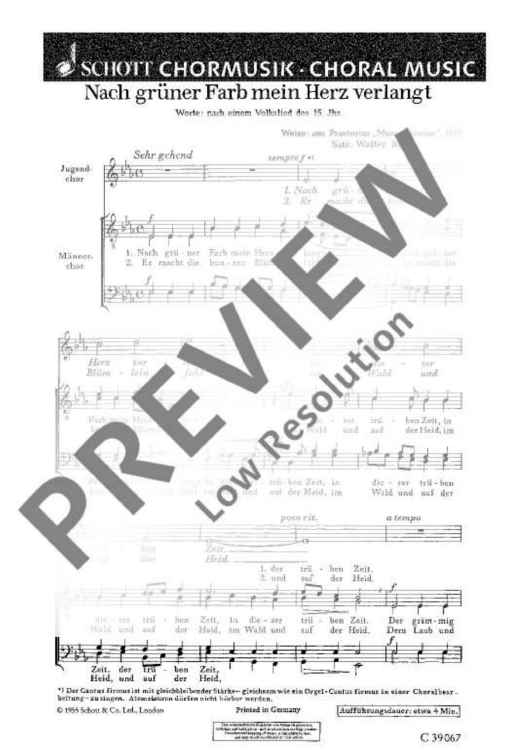 Digital Sheet Music for Nach grüner Farb mein Herz verlangt - Choral Score by Walter Rein scored for Children's Choir (mez) With Men's Choir (ttbb); id:479688