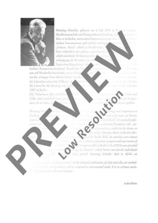 Die Variationen über „Ach bittrer Winter“, in der ungewöhnlichen Kombination Viola und Cello, sind motivisch-kontrapunktisch ausgearbeitet und sehr instrumentengerecht komponiert. Es ist keine virtuose Musik, sondern auch für fortgeschrittene Schüler/innen spielbar.