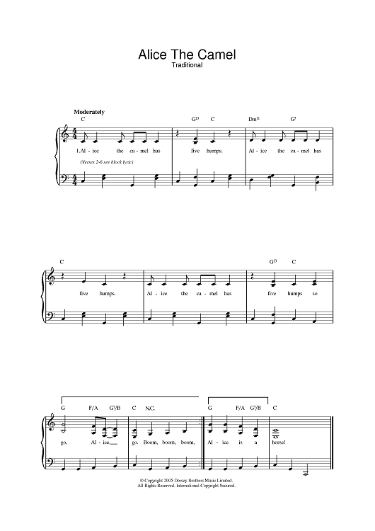 Digital Sheet Music for Alice The Camel by scored for Piano/Vocal/Chords; id:386132