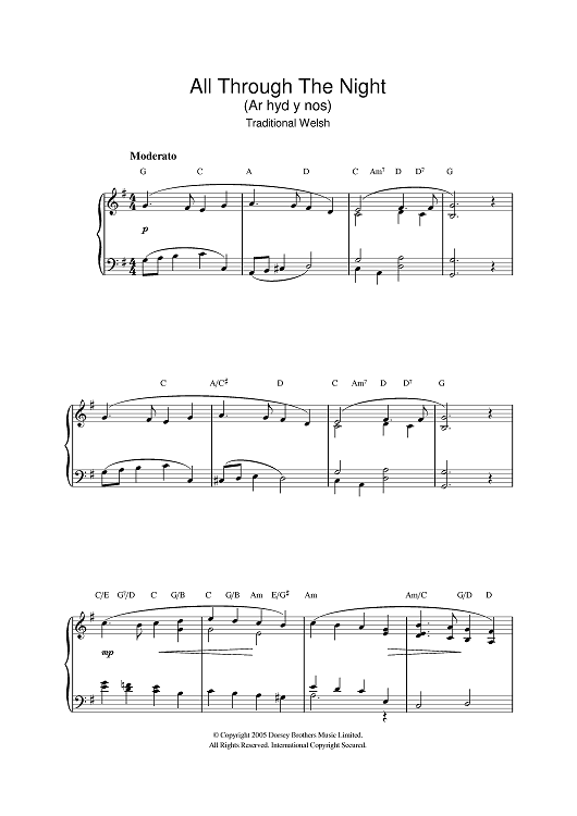 "All Through The Night" Sheet Music by Traditional Welsh Melody