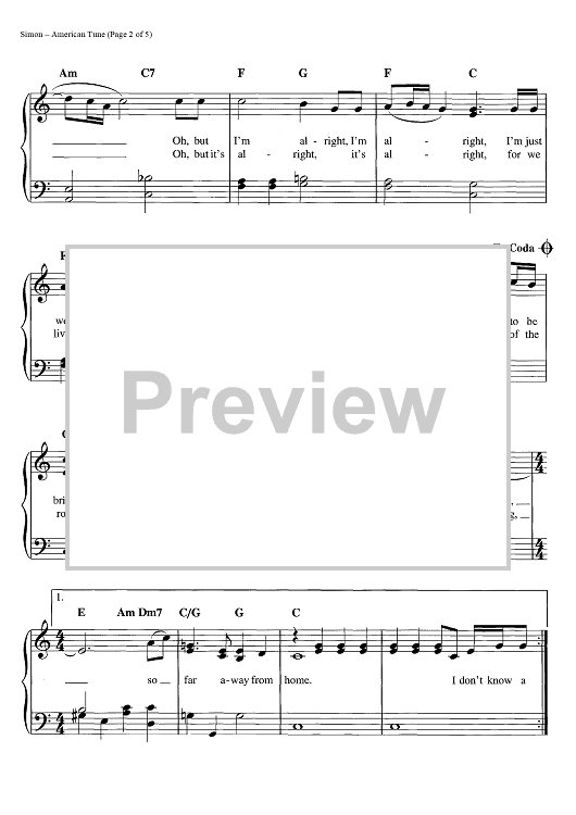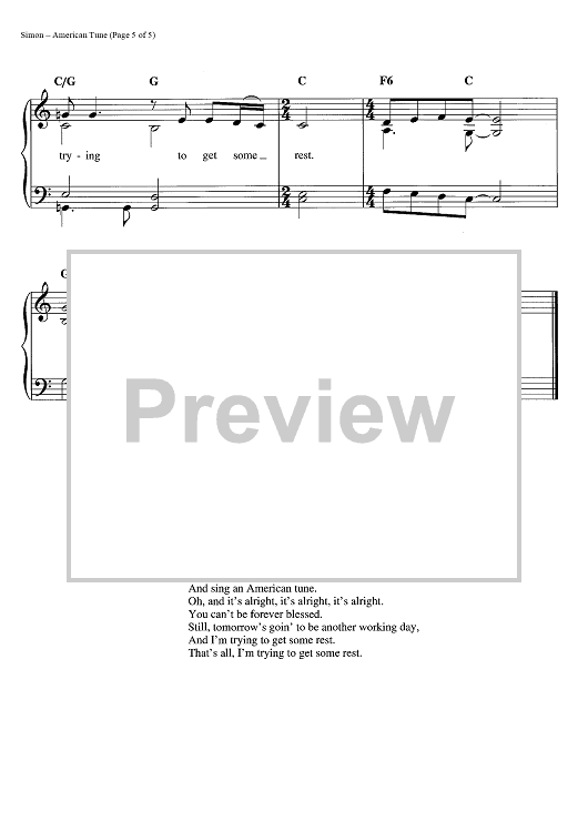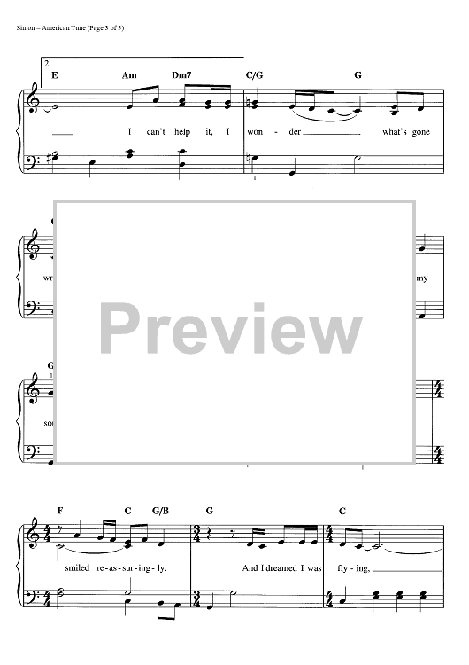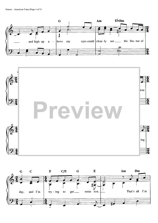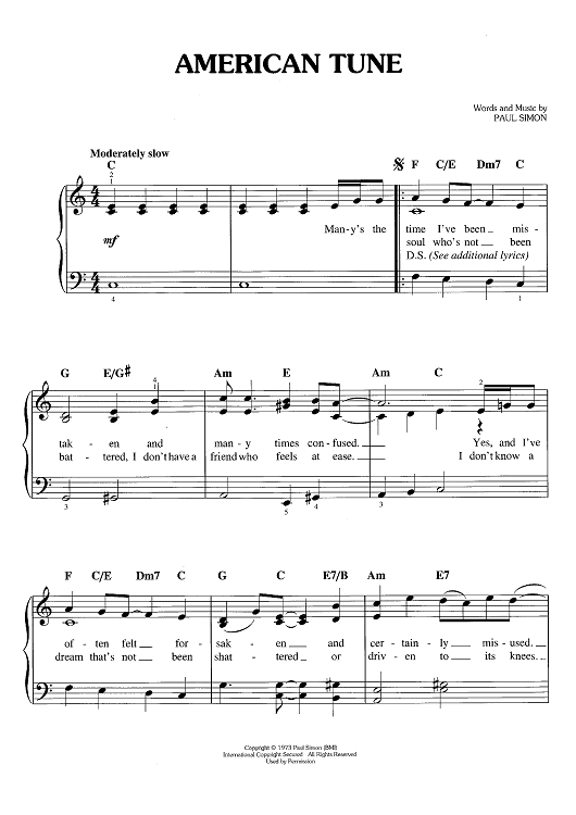 Digital Sheet Music for American Tune by Paul Simon scored for Easy Piano/Vocal/Chords; id:445023