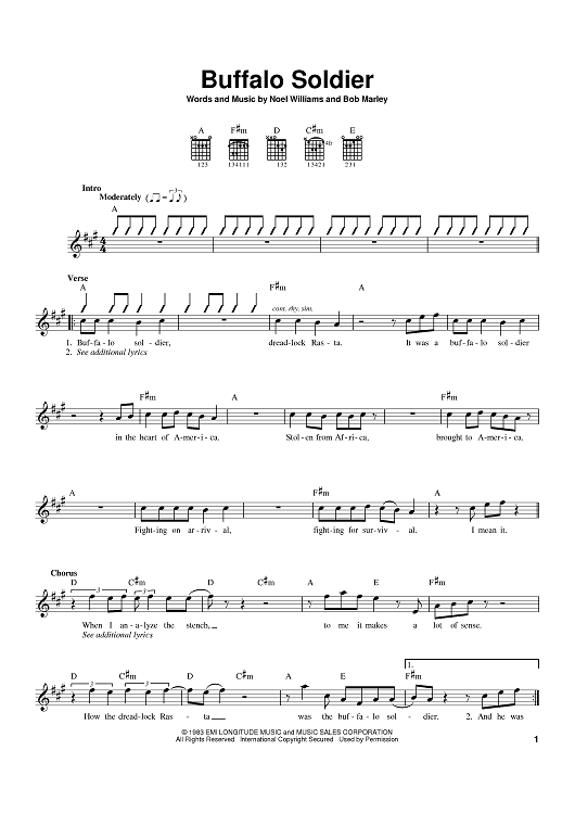 "Buffalo Soldier" Sheet Music by Bob Marley