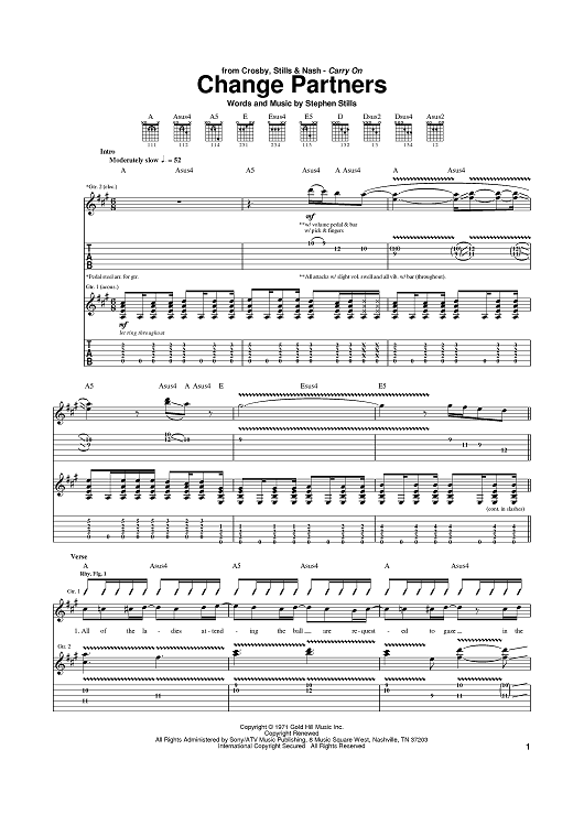 Digital Sheet Music for Change Partners by Stephen Stills, Crosby, Stills, Nash & Young scored for Guitar Tab; id:383848
