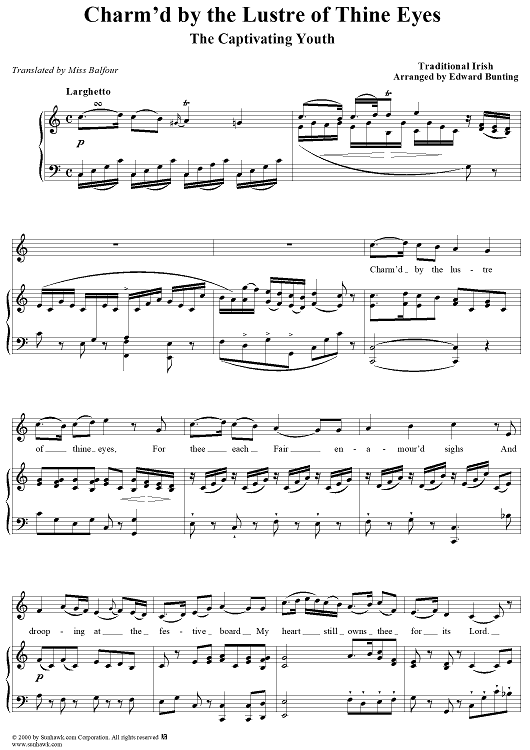 Digital Sheet Music for Charm'd by the Lustre of Thine Eyes by , Edward Bunting, Traditional scored for Piano/Vocal; id:260653