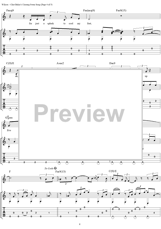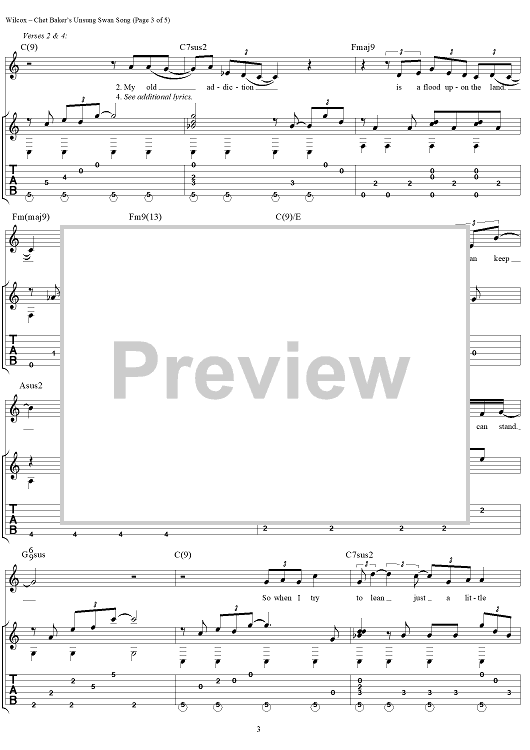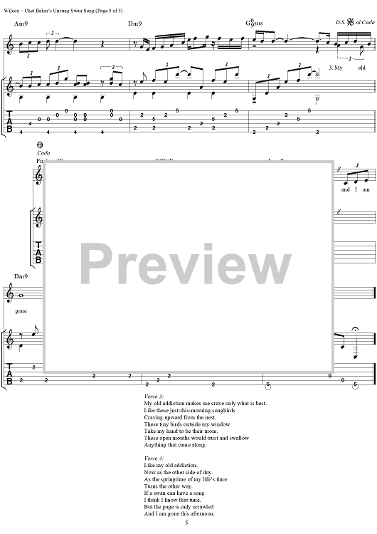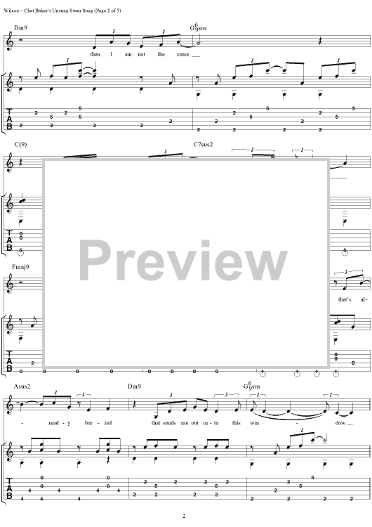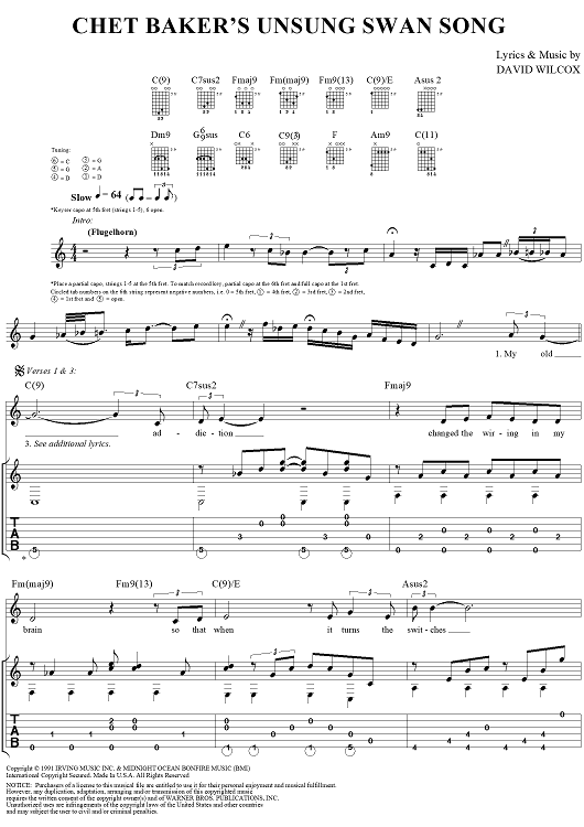 Digital Sheet Music for Chet Baker's Unsung Swan Song by David Wilcox scored for Guitar Tab/Vocal; id:263941
