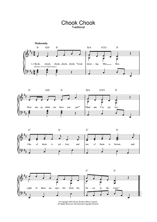Digital Sheet Music for Chook Chook by scored for Piano/Vocal/Chords; id:386118