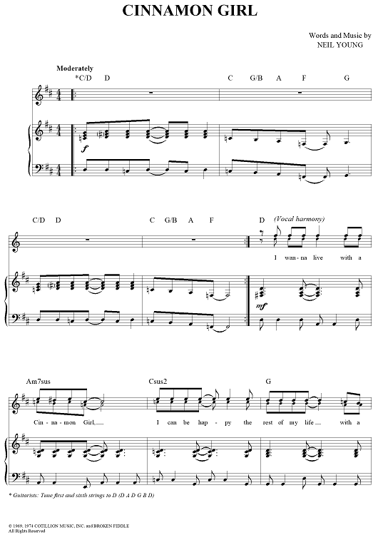 Digital Sheet Music for Cinnamon Girl by Neil Young scored for Piano/Vocal/Chords; id:262924