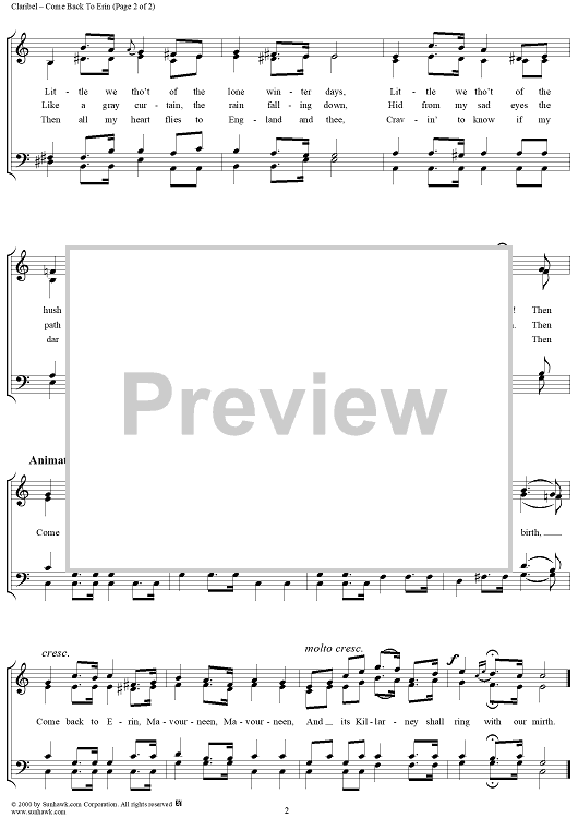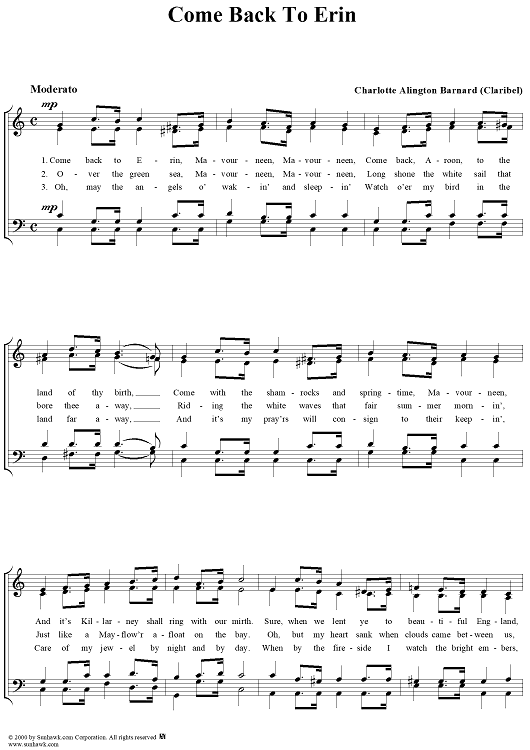 Digital Sheet Music for Come Back to Erin by Claribel scored for Four-part Mixed Chorus; id:203385