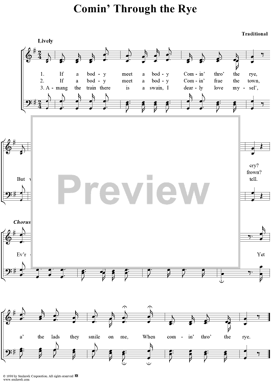 Digital Sheet Music for Comin' Through the Rye by Robert Burns, Traditional scored for Four-part Mixed Chorus; id:111259